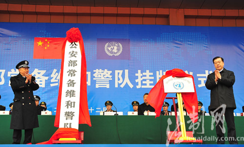 ????經(jīng)國務(wù)院和中央軍委批準,12月22日,公安部常備維和警隊在山東省東營市掛牌成立。公安部部長助理王儉出席儀式并為警隊揭牌、授旗。