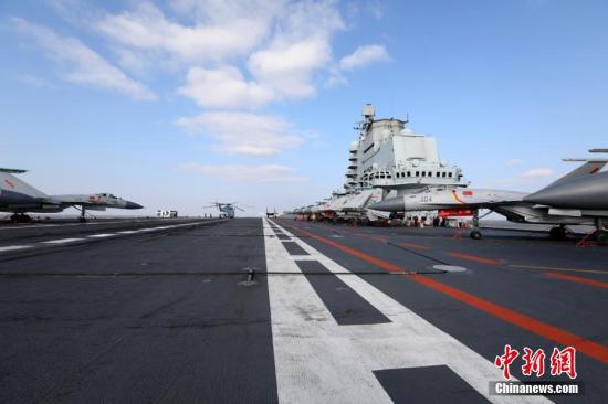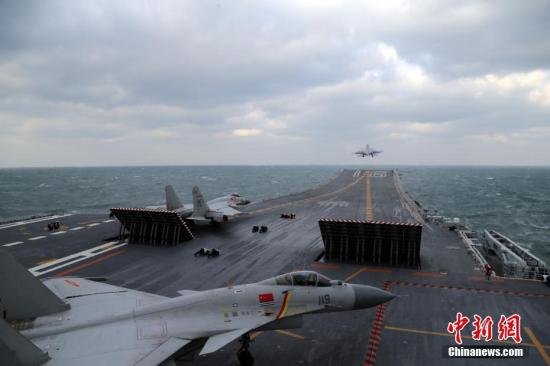 中國海軍航母編隊(duì)在南海組織艦載機(jī)起降訓(xùn)練
