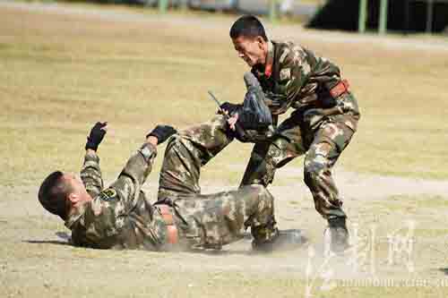 ????“進(jìn)可一招殺敵,退可一招制服?!币坏裙Τ?、反恐尖兵、軍事教員、四級(jí)警士長(zhǎng)李文介紹,此次展示的特種格斗控制術(shù)是該支隊(duì)在緝私、緝毒、反恐、維穩(wěn)等長(zhǎng)期戰(zhàn)斗中形成和發(fā)展起來的一項(xiàng)格斗控制技能,綜合運(yùn)用踢、摔、擒拿等技法,涵蓋重點(diǎn)部位打擊、徒手打擊、警械運(yùn)用等要領(lǐng),使官兵在訓(xùn)練中體驗(yàn)綜合格斗,在格斗中突破自我身體極限,達(dá)到強(qiáng)身健體、提高戰(zhàn)斗水平的目的。