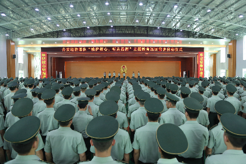公安邊防部隊(duì)“維護(hù)核心、聽(tīng)從指揮”主題教育巡回宣講啟動(dòng)儀式現(xiàn)場(chǎng)。