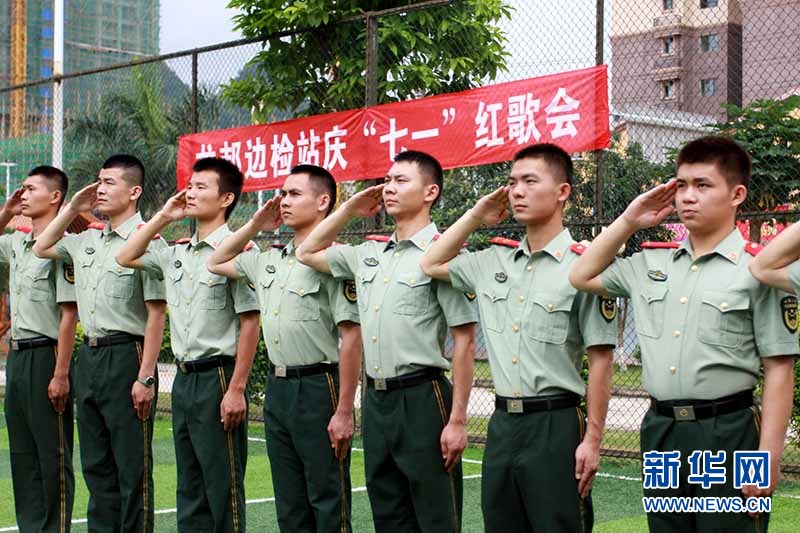 邊防官兵向黨旗致敬。梁鈞銘 攝