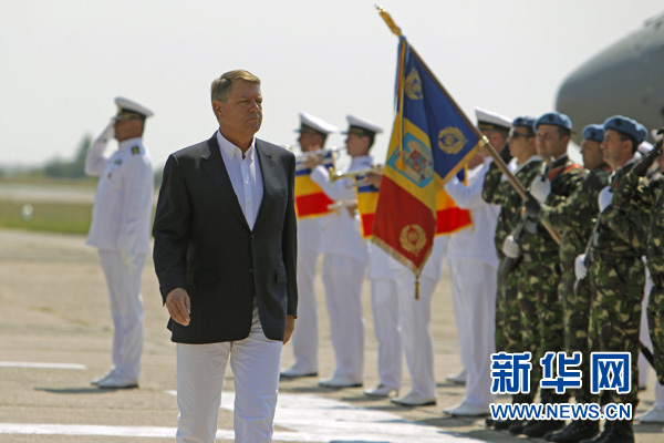 7月13日,羅馬尼亞總統(tǒng)約翰尼斯視察米哈伊爾-科格爾尼恰努空軍基地。新華社發(fā)(克里斯泰爾 攝)