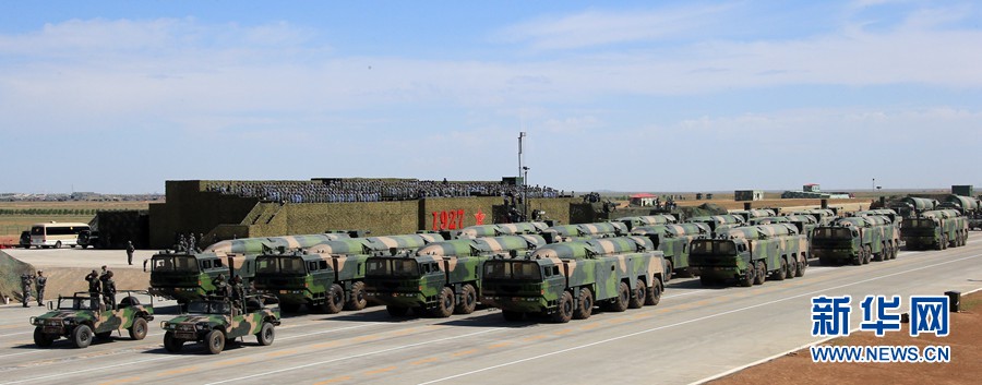 7月30日,慶祝中國(guó)人民解放軍建軍90周年閱兵在位于內(nèi)蒙古的朱日和訓(xùn)練基地舉行。中共中央總書(shū)記、國(guó)家主席、中央軍委主席習(xí)近平檢閱部隊(duì)并發(fā)表重要講話(huà)。這是核導(dǎo)彈方隊(duì)。新華社記者 查春明 攝