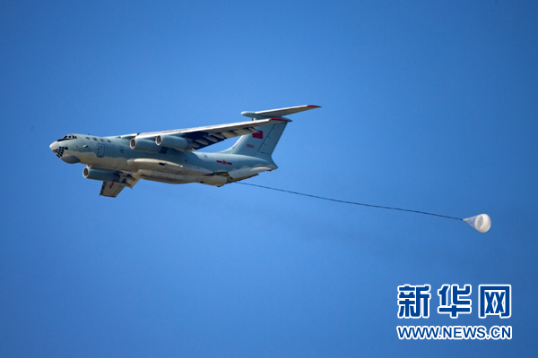 8月4日,中國空軍伊爾-76戰(zhàn)機在“航空飛鏢”靶場開放日進行重裝空投。新華社發(fā)(楊盼 攝)