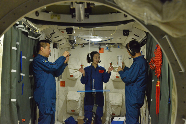 ????太空授課是神十任務一大亮點。人在失重環(huán)境下連站穩(wěn)都很難,如果還要開展授課、實驗和拍攝,那比地面難出千百倍,聶海勝、張曉光、王亞平三人乘組為此在地面進行了200多個小時的訓練。