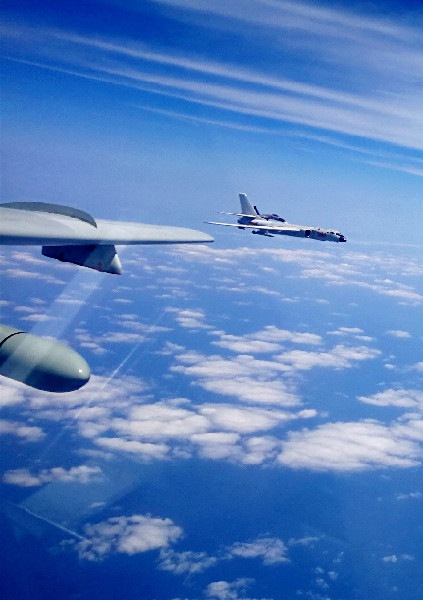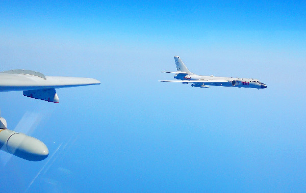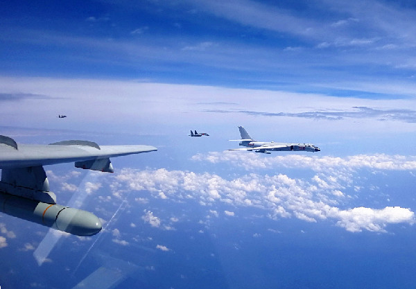 ?。丛拢保溉找詠?,空軍出動轟-6K、蘇-30、殲-11和偵察機、預(yù)警機等多型多架戰(zhàn)機,開展了海上方向?qū)崙?zhàn)化軍事訓(xùn)練。轟-6K等戰(zhàn)機實施了“繞島巡航”訓(xùn)練課題,提升了機動能力,檢驗了實戰(zhàn)能力。