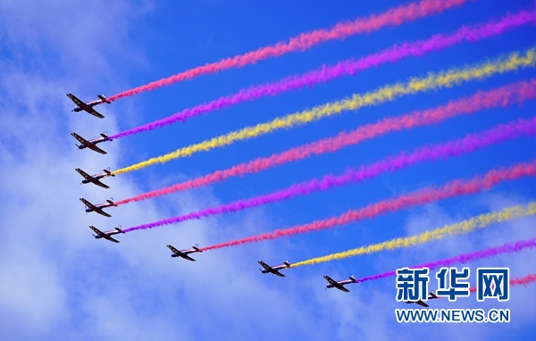 8月30日,“天之翼”飛行表演隊在空軍航空開放活動上進行飛行表演。 新華社記者 王東明 攝