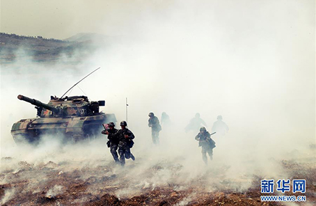 ????在一次實兵演習(xí)中,“王杰班”所在連隊官兵配合坦克突入“敵”一線陣地(2014年10月16日攝)。新華社發(fā)(王磊 攝)