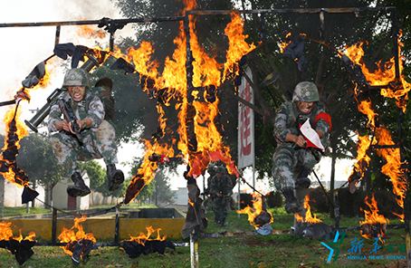 ????在一次對抗演習(xí)中,“王杰班”所在連隊官兵發(fā)起沖鋒(2015年6月25攝)。新華社發(fā)(趙聰 攝)