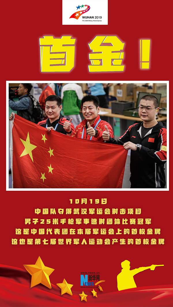 新華社武漢10月19日電 題:打響第一槍 射中第一金——中國隊勇奪第七屆世界軍人運動會首金側記