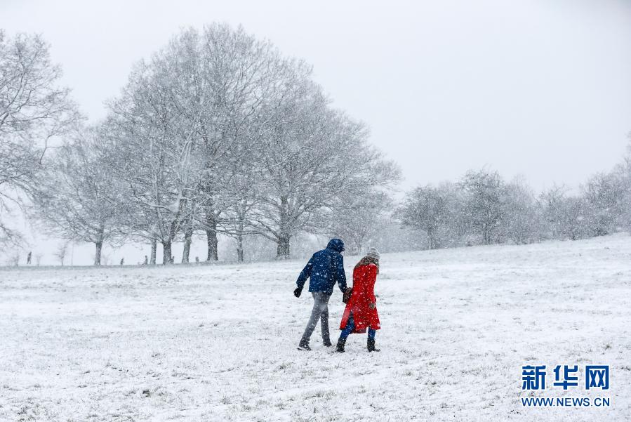 1月24日,人們在英國倫敦的大雪中行走。新華社記者韓巖攝
