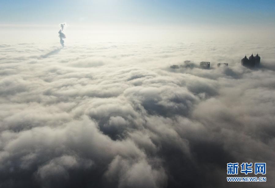 這是1月26日在沈陽市渾南區(qū)拍攝的市內霧景(無人機照片)。新華社記者 楊青 攝