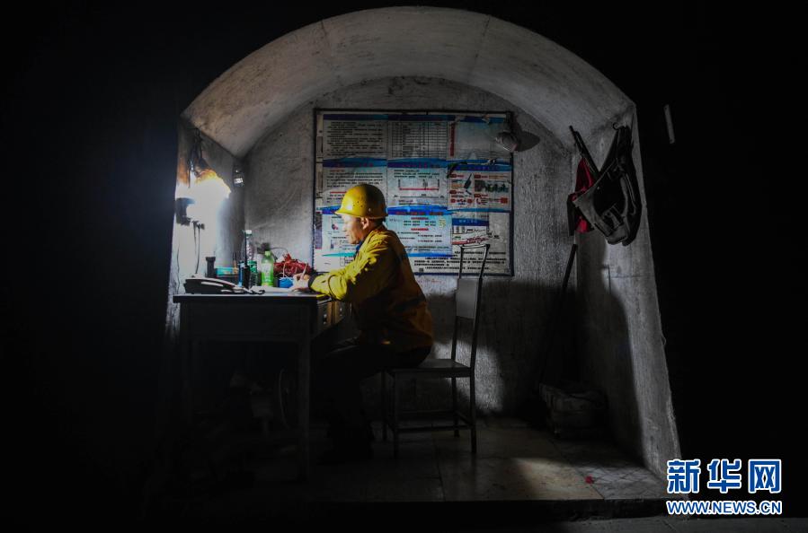 在黔桂鐵路線上的鄧山隧道,看守工廖成根在避車洞內(nèi)當班(1月30日攝)。