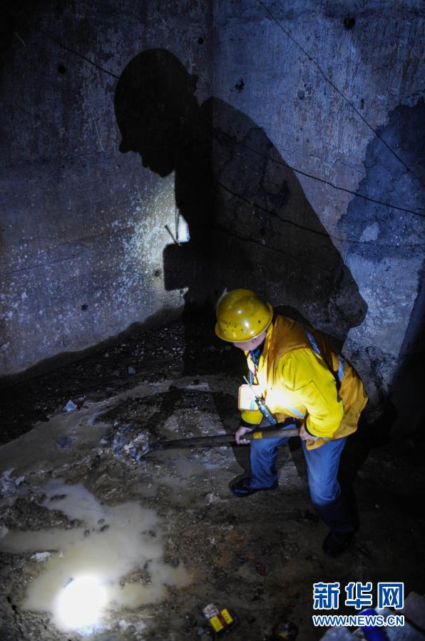 在廣西河池境內(nèi)黔桂鐵路線上的鄧山隧道,中國鐵路南寧局集團(tuán)有限公司柳州工務(wù)段的4名看守工輪換值班,依靠手電筒在黑暗中穿行,及時巡查隧道中可能出現(xiàn)的各種隱患,確保每天經(jīng)隧道運行的59趟客貨列車春運安全。鄧山隧道全長773米,是一個需要人員全天候看守的鐵路隧道。