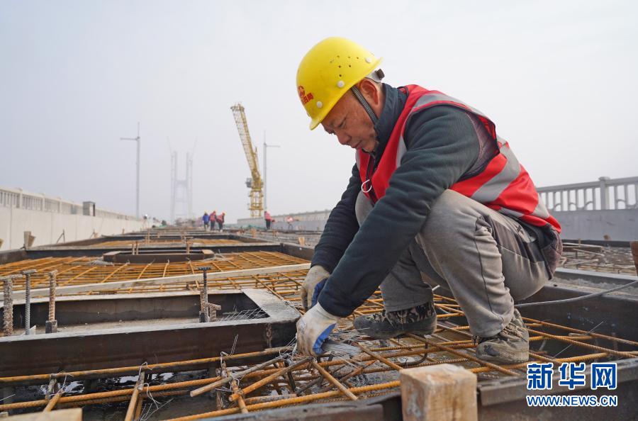 在安九高鐵江西段長江特大橋的工地上,來自安徽的20多名中鐵四局建筑工人在大橋上緊張施工。為響應(yīng)就地過年政策和追趕因疫情耽誤的工期,他們決定今年不回老家過年了。
