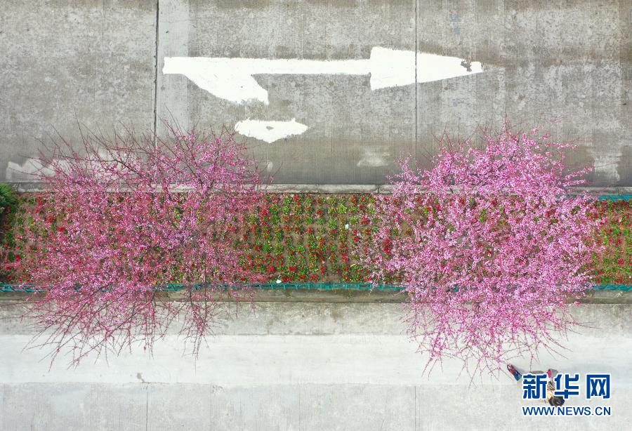 浙江景寧畬族自治縣街頭梅花盛開(2月14日攝,無人機照片)。新華社發(fā)(李肅人 攝)