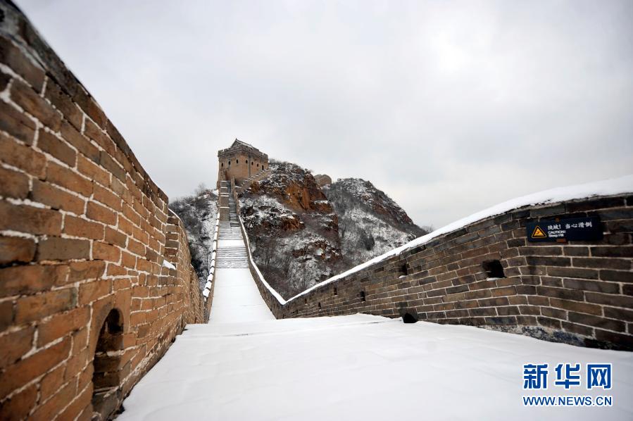 這是2月23日拍攝的金山嶺長城雪景。受冷空氣影響,河北省承德市灤平縣當日出現(xiàn)降雪天氣。雪后的金山嶺長城銀裝素裹,美如畫卷。新華社發(fā)(王立群 攝)