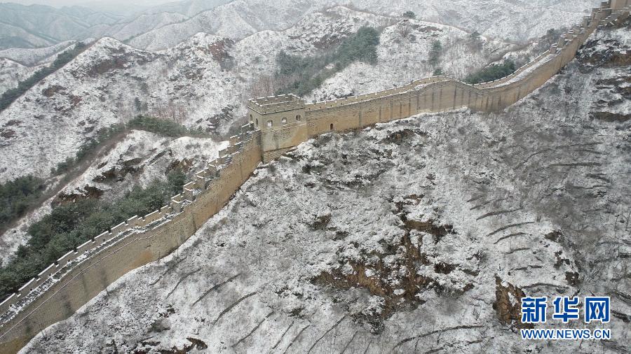 這是2月23日拍攝的金山嶺長(zhǎng)城雪景(無(wú)人機(jī)照片)。受冷空氣影響,河北省承德市灤平縣當(dāng)日出現(xiàn)降雪天氣。雪后的金山嶺長(zhǎng)城銀裝素裹,美如畫(huà)卷。新華社發(fā)(王立群 攝)