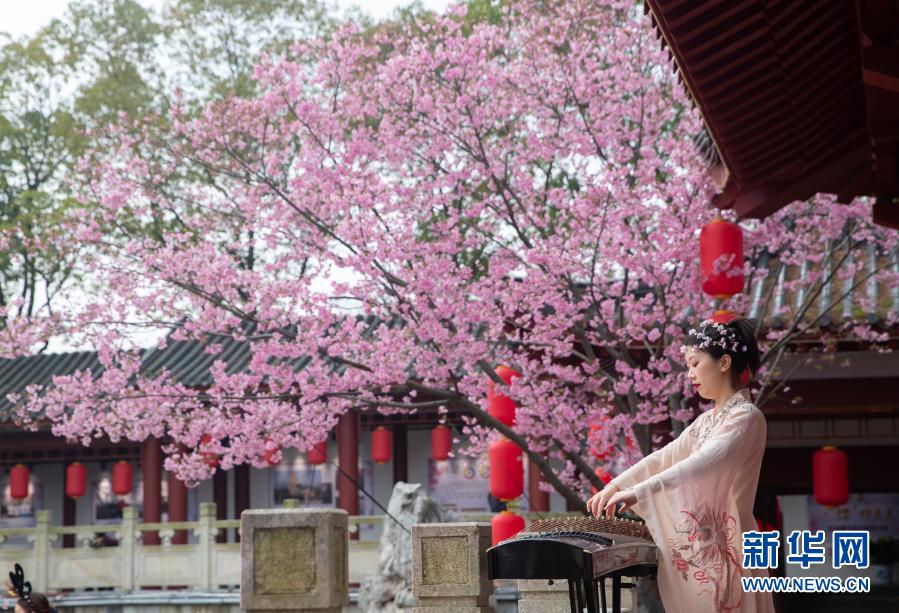 2月27日,演員在武漢東湖櫻花園表演節(jié)目。