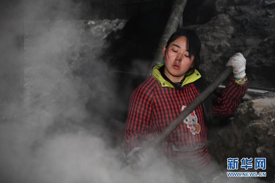 張志菊在自家的農(nóng)場里準備豬飼料(2月25日攝)。