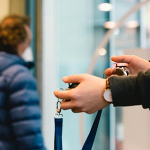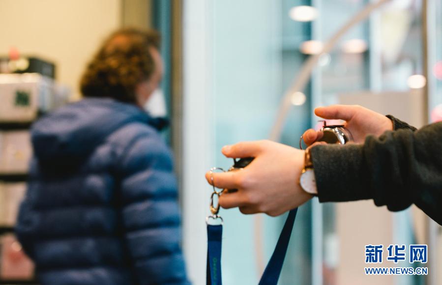 3月8日,德國科隆一家書店的工作人員在入口處手拿計數(shù)器限制客流。