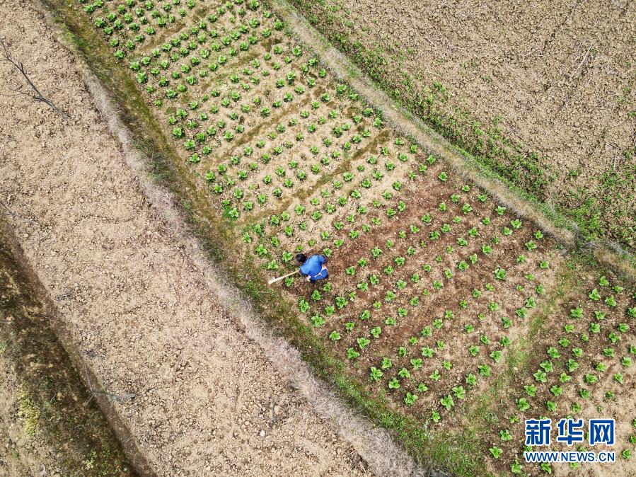 3月13日,遵義市匯川區(qū)團澤鎮(zhèn)農(nóng)民在田間勞作(無人機照片)。新華社發(fā)(羅星漢 攝)