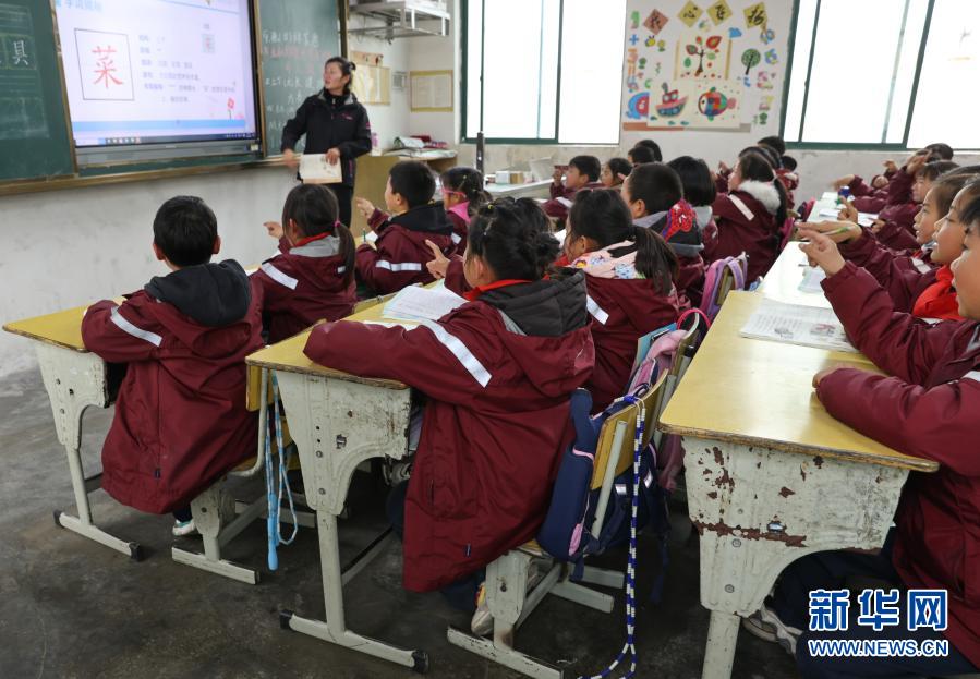 騎路小學(xué)二年級學(xué)生在教室上課,跳繩掛在他們的座椅背上(3月9日攝)。新華社記者 楊磊 攝