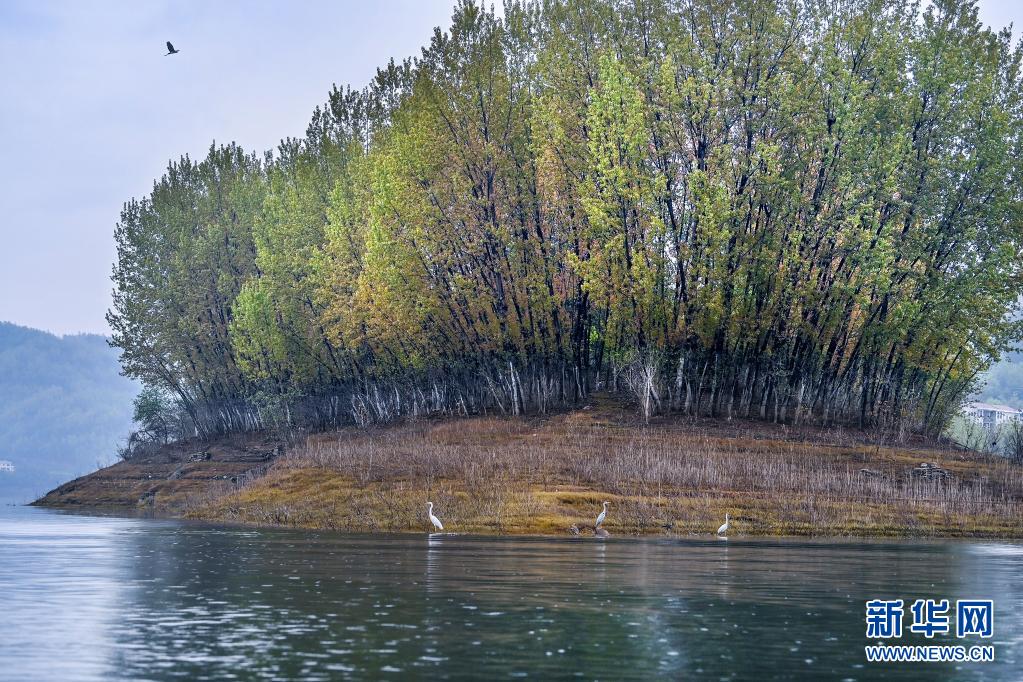 這是流水鎮(zhèn)的漢江江面上的一處島嶼(3月26日攝)。