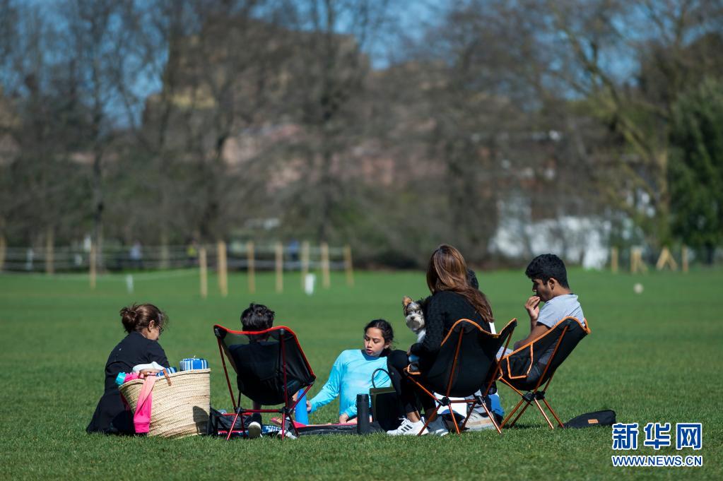 3月29日,人們在英國倫敦攝政公園的草地上野餐。