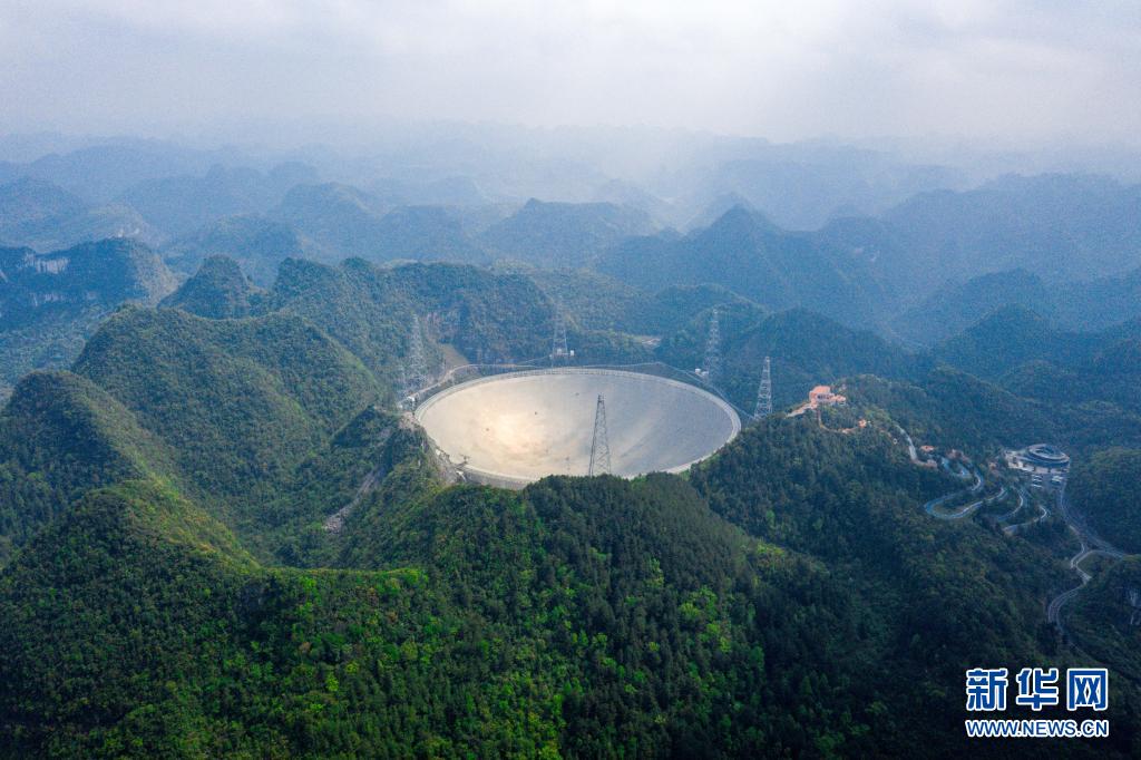 在貴州省平塘縣,被譽(yù)為“中國(guó)天眼”的500米口徑球面射電望遠(yuǎn)鏡(FAST)在群山中仰望星空,探求著宇宙奧秘。