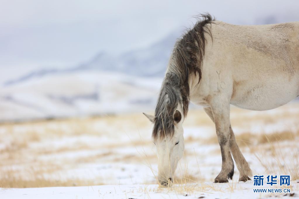 當日,受冷空氣影響,位于甘肅省河西走廊中部、祁連山北麓的山丹馬場降雪,馬群在雪原上奔跑覓食,構(gòu)成了一幅壯美高原雪景 。
