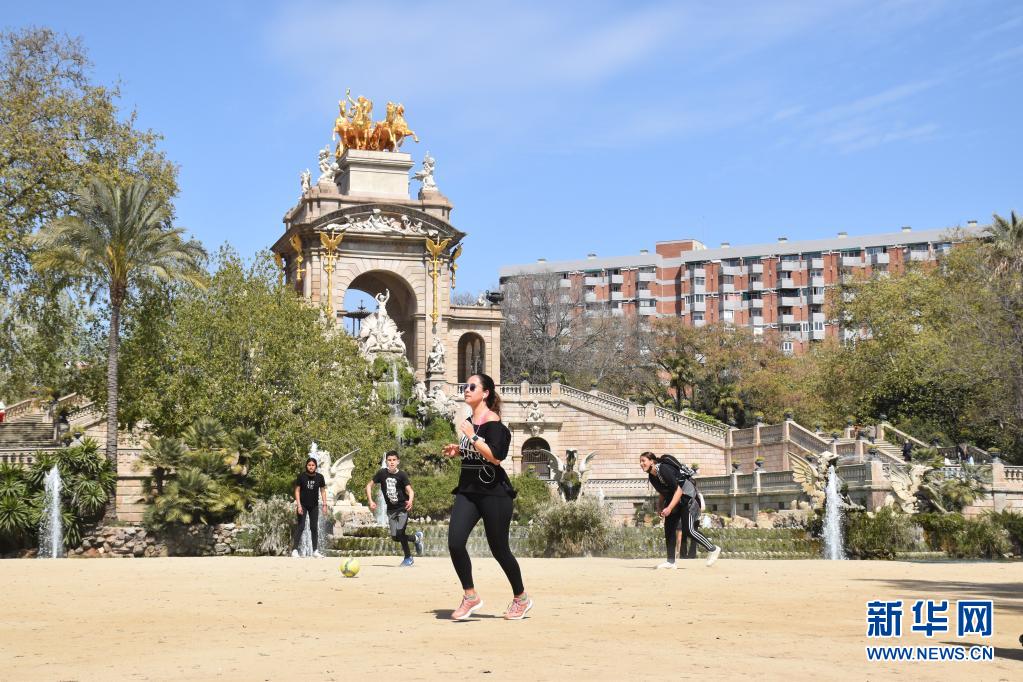 3月30日,人們在西班牙巴塞羅那城堡公園內(nèi)鍛煉。