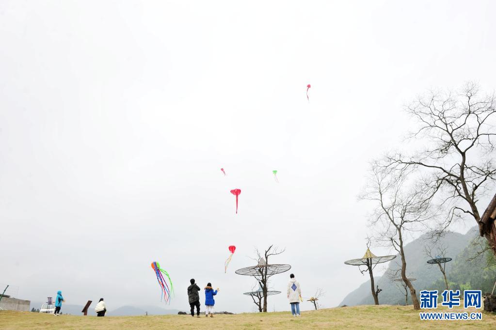 4月5日,游客在重慶市酉陽土家族苗族自治縣疊石花谷生態(tài)旅游景區(qū)放風(fēng)箏。