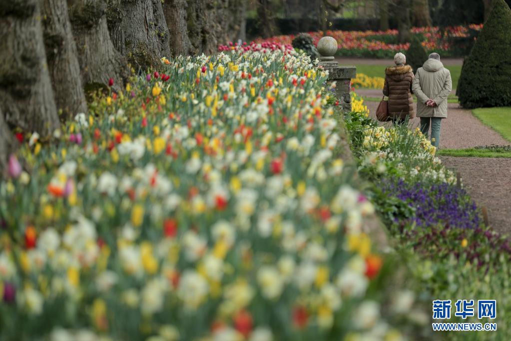 近日,第十八屆比利時布魯塞爾國際花展在布魯塞爾市以西的拜加登城堡開幕?;ɑ茉O計師和園丁在這座占地14公頃的園林里種植了超過100萬株的鮮花,打造了一片鮮花海洋。此次花展展出了大約400個品種的郁金香,此外還包括大量的風信子和水仙花。主辦方采取了一系列防控新冠疫情的措施,如限制客流、提醒游客佩戴口罩、提供酒精消毒洗手液等。本屆花展將持續(xù)至5月2日。