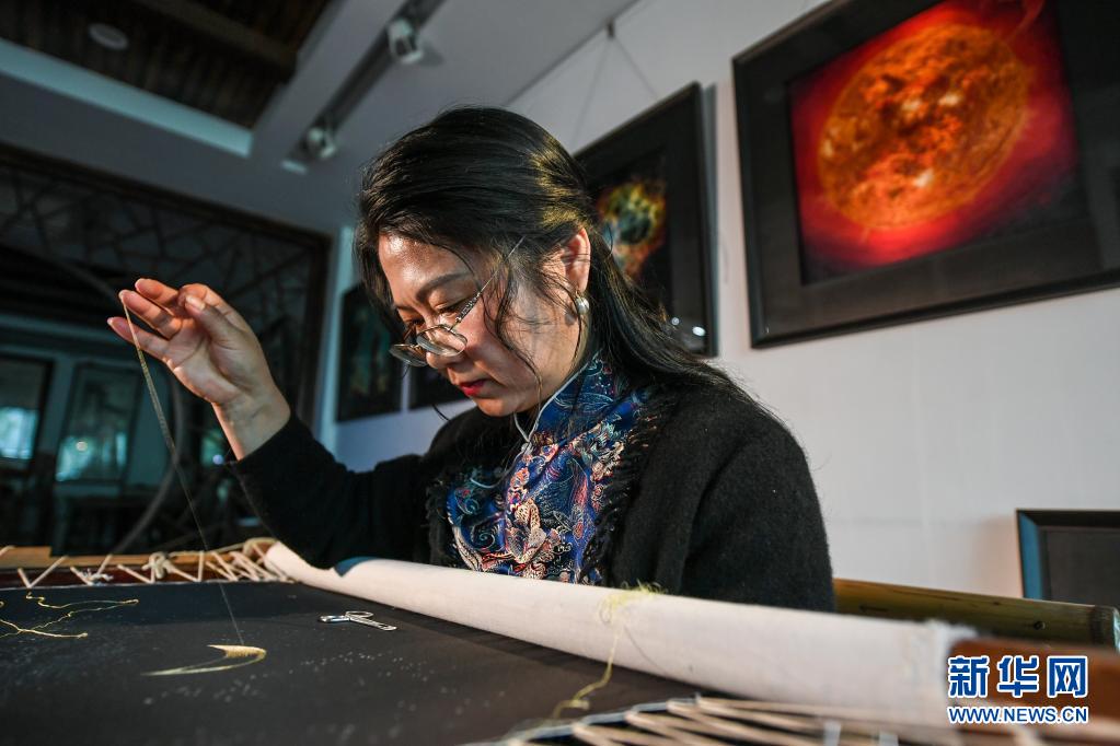 從2000年開始,陳英華陸續(xù)繡制了26幅星空圖。她告訴記者,星空系列蘇繡作品問世后很受歡迎。未來希望自己能再度拓寬蘇繡的創(chuàng)作領(lǐng)域,讓更多人看到、喜歡上蘇繡文化。