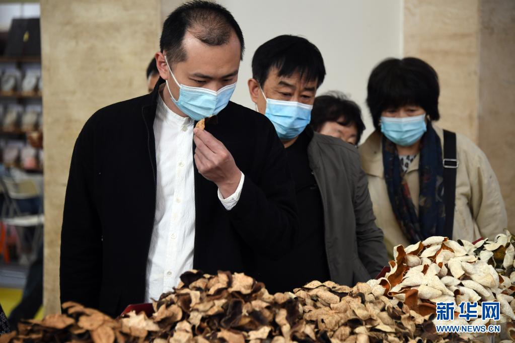 李卓澄在第十三屆中國(北京)國際茶業(yè)及茶藝博覽會(huì)中了解展出的陳皮(4月23日攝)。新華社記者 任超 攝