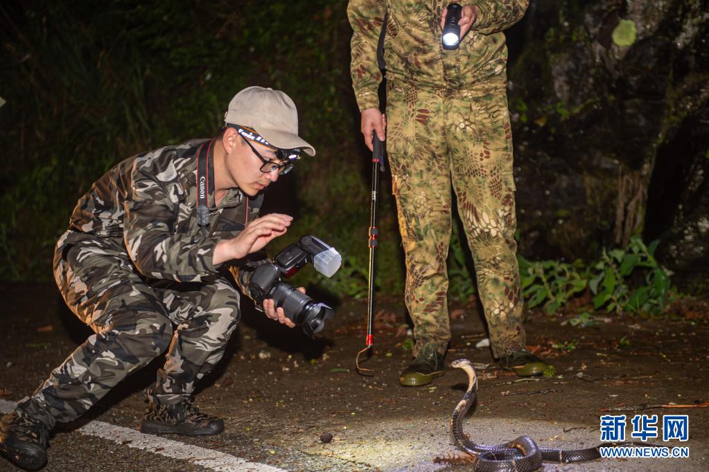 5月11日,南京環(huán)境科學研究所工作人員為眼鏡蛇拍照制作電子標本。