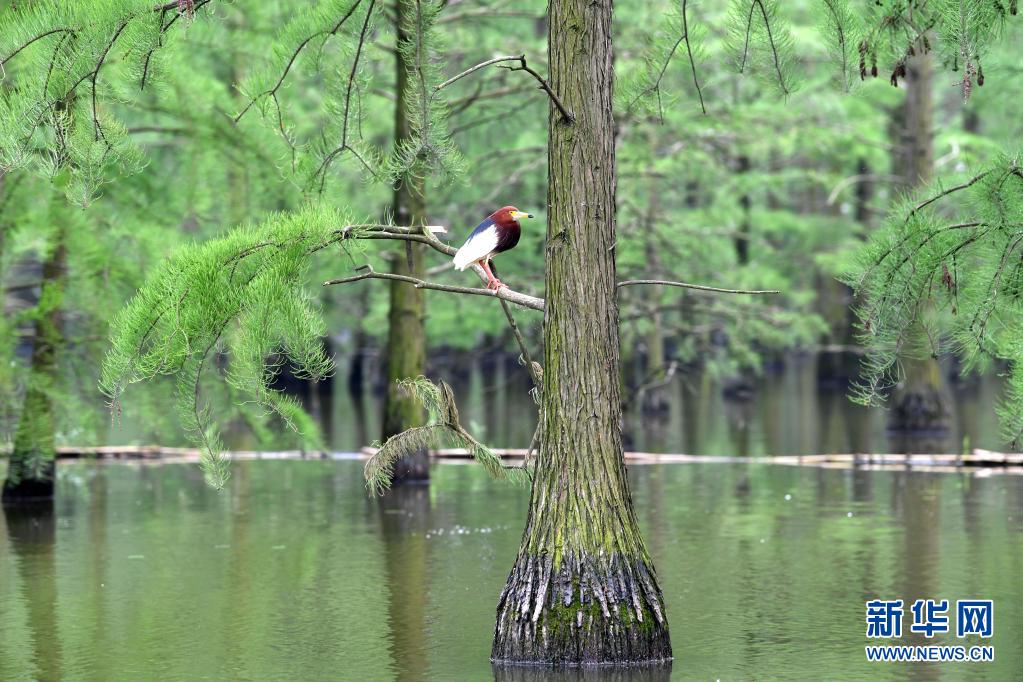 位于安徽省滁州市來安縣雷官鎮(zhèn)的池杉湖國家濕地公園經(jīng)過多年的生態(tài)修復,形成分布數(shù)萬株池杉樹、具有獨特觀賞價值的“水上森林”濕地景觀,成為眾多鳥類生活、棲息的“天堂”。