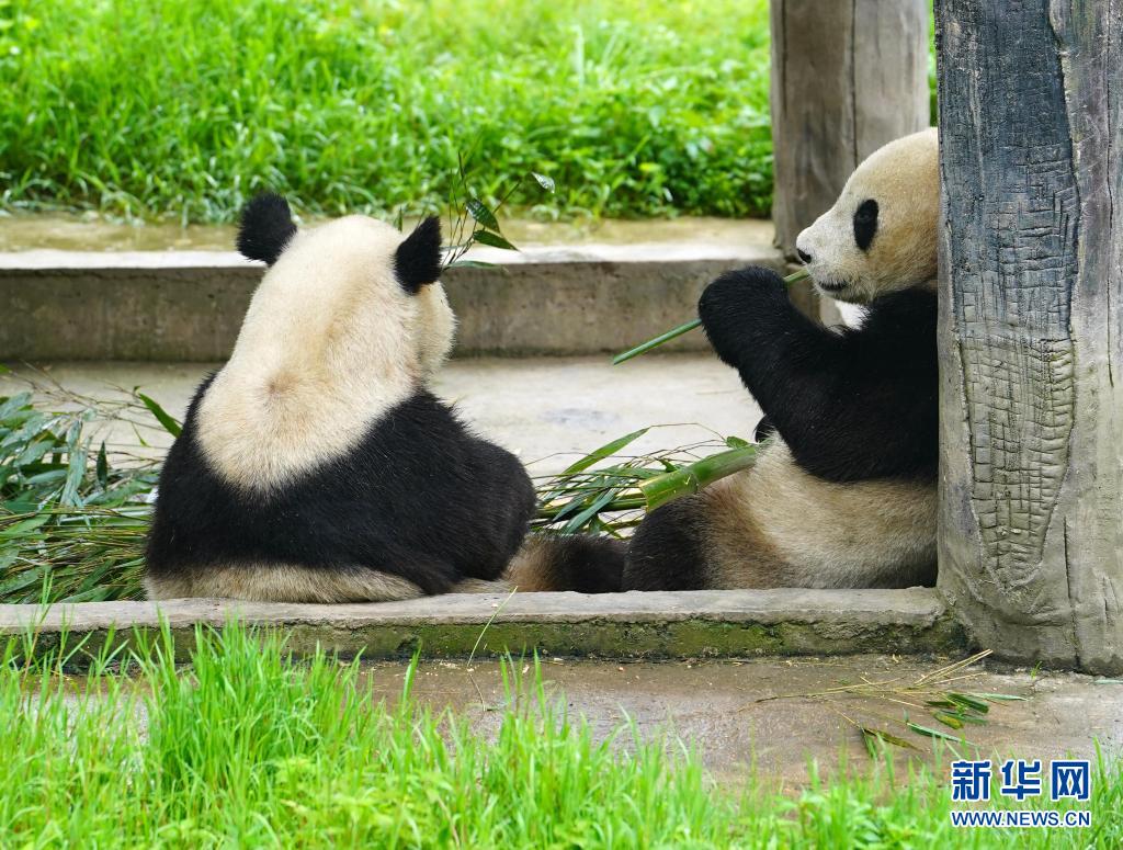 這是5月15日在中國(guó)大熊貓保護(hù)研究中心雅安碧峰峽基地拍攝的大熊貓。
