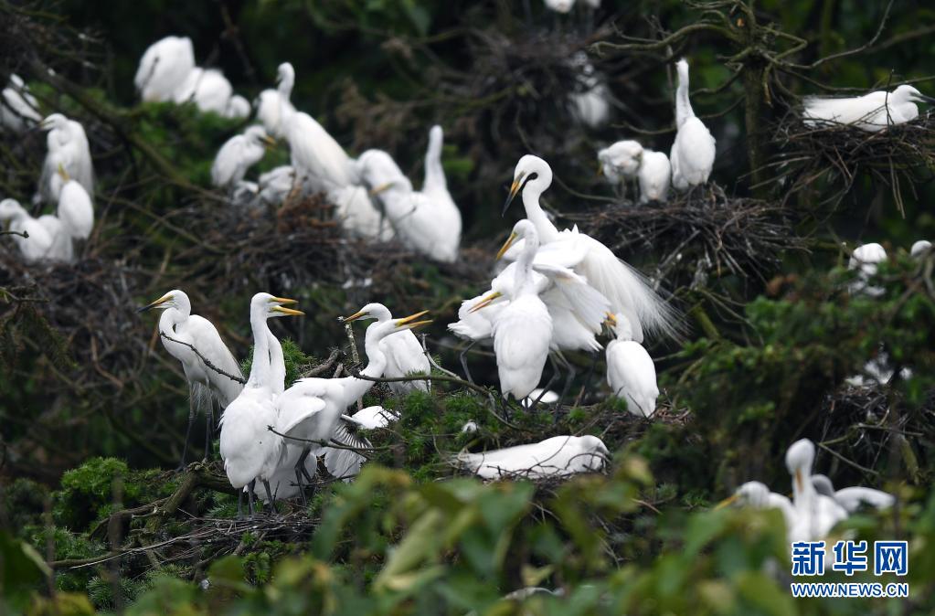 近期,在位于鄱陽湖畔的江西省南昌市新建區(qū)象山森林公園內(nèi),已安家筑巢的鷺鳥進(jìn)入孵化哺育旺季。象山森林公園有著“鷺鳥王國”的美譽(yù),每年都會(huì)吸引白鷺、蒼鷺、夜鷺等種類的鷺鳥飛抵棲息和繁衍后代。
