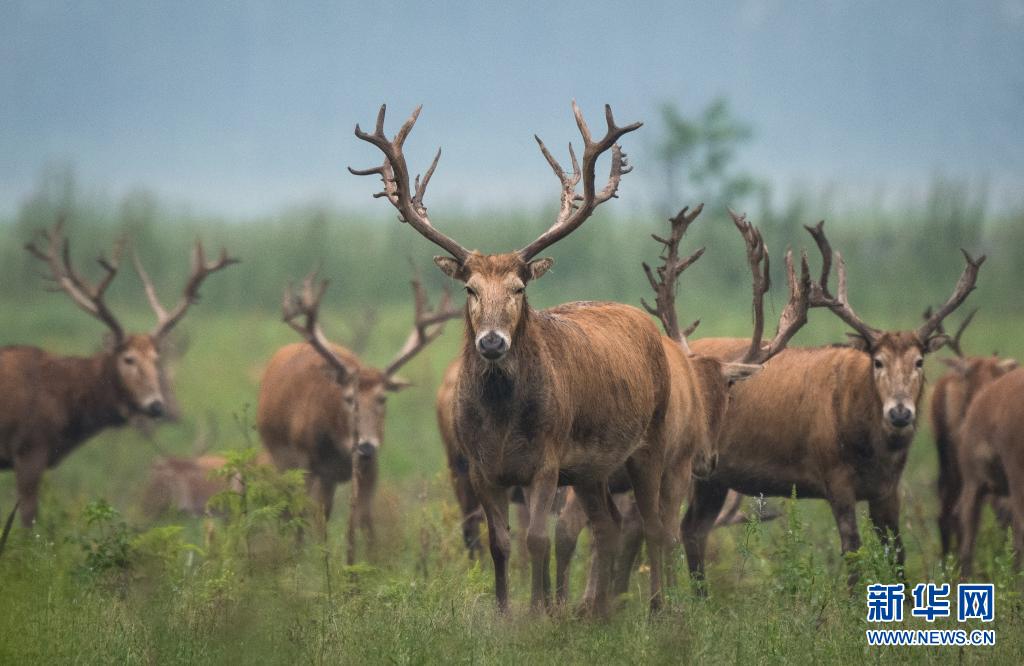 5月17日,一群麋鹿在石首麋鹿國(guó)家級(jí)自然保護(hù)區(qū)內(nèi)活動(dòng)。
