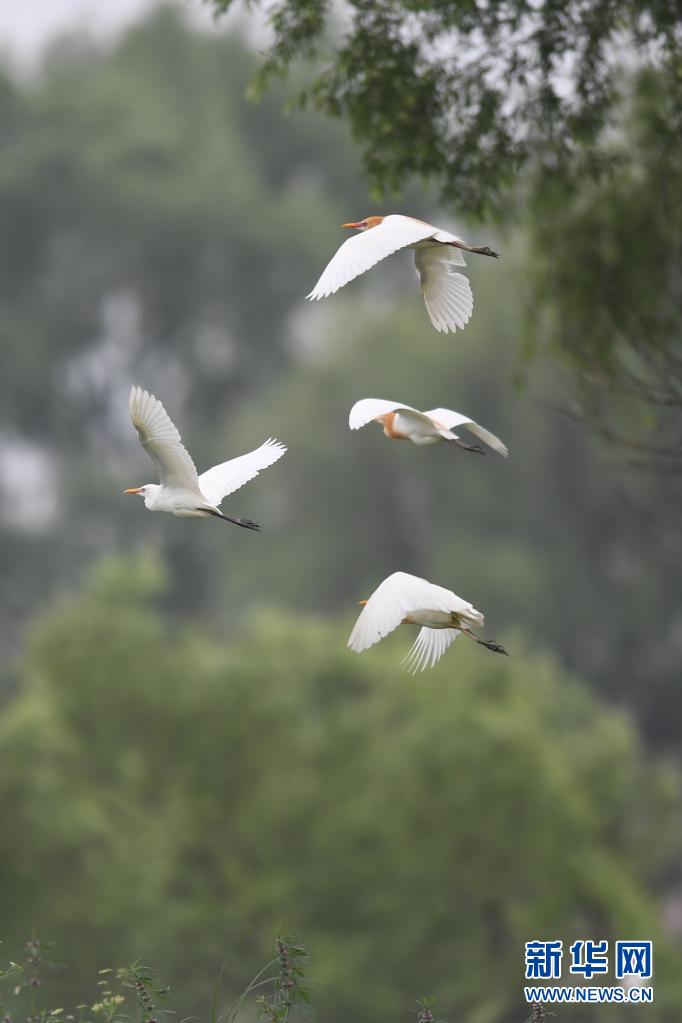 隨著天氣轉暖,大批鷺鳥飛到湖南益陽沅江市的南洞庭湖區(qū)筑巢、棲息、繁殖。