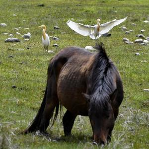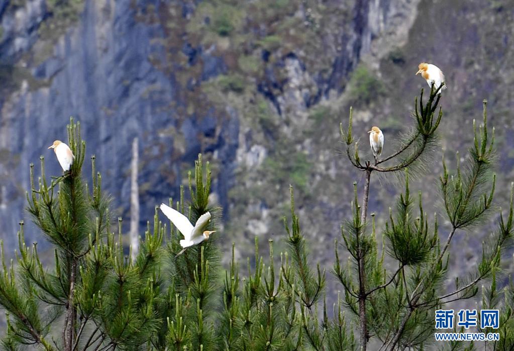 5月23日,牛背鷺在易貢國家地質(zhì)公園棲息。