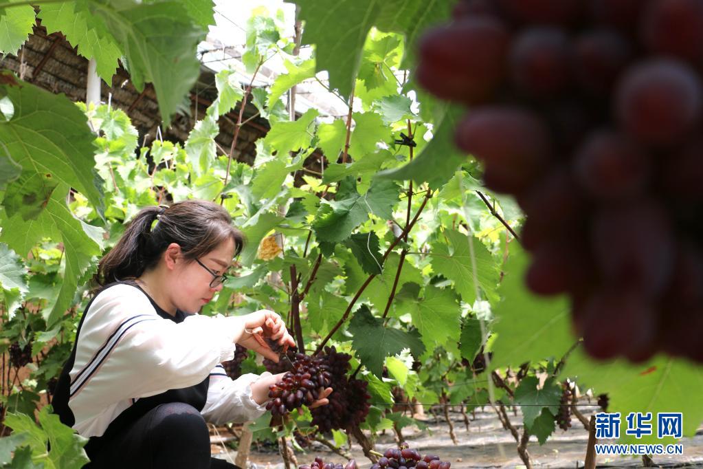 5月23日,市民在河北省平泉市道虎溝鄉(xiāng)雙峰社區(qū)一處設施葡萄大棚里采摘茉莉香葡萄。