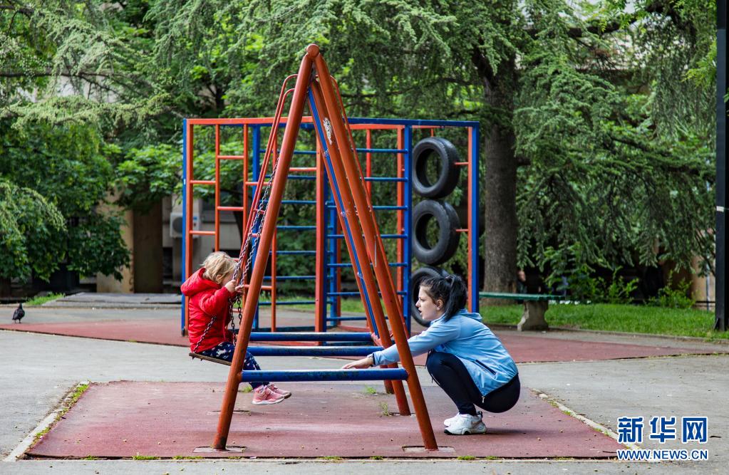 5月31日,在塞爾維亞貝爾格萊德,一名兒童在公園里蕩秋千。