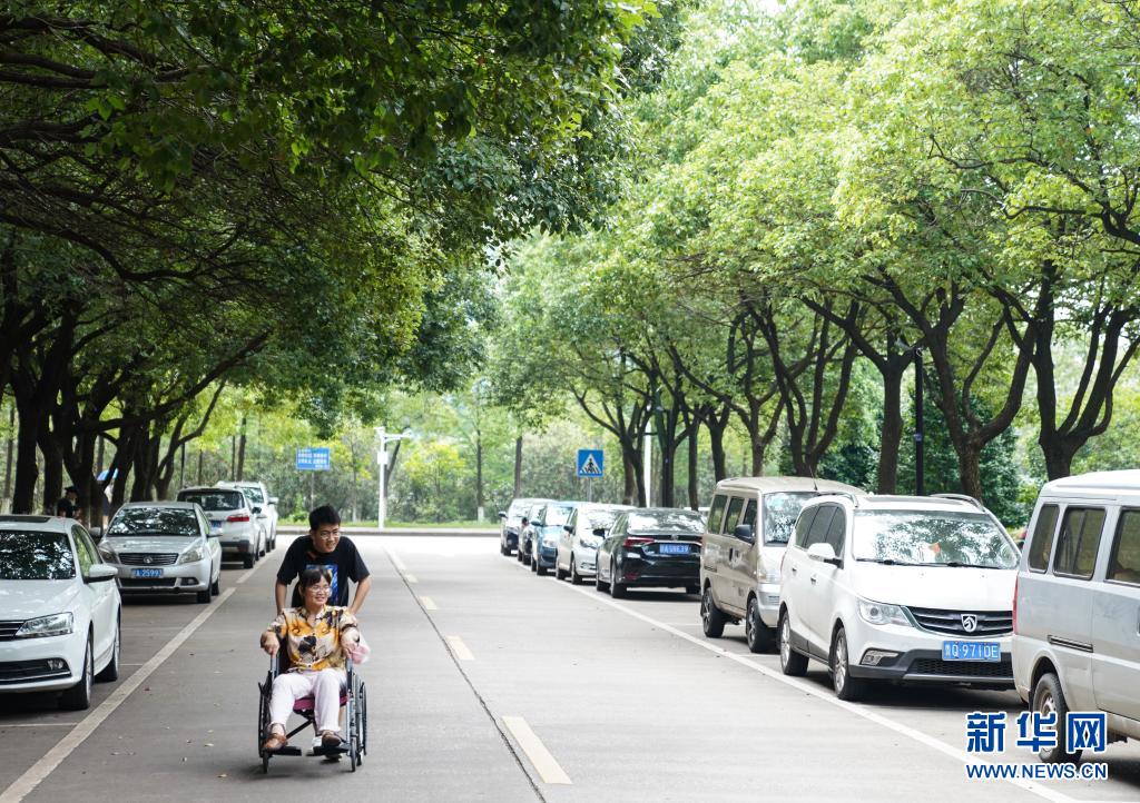 6月1日,趙建軍利用課余時(shí)間帶著母親在校園內(nèi)散心。新華社記者胡晨歡攝