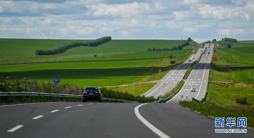 內(nèi)蒙古呼倫貝爾332國(guó)道旁景色迷人(6月10日攝)。