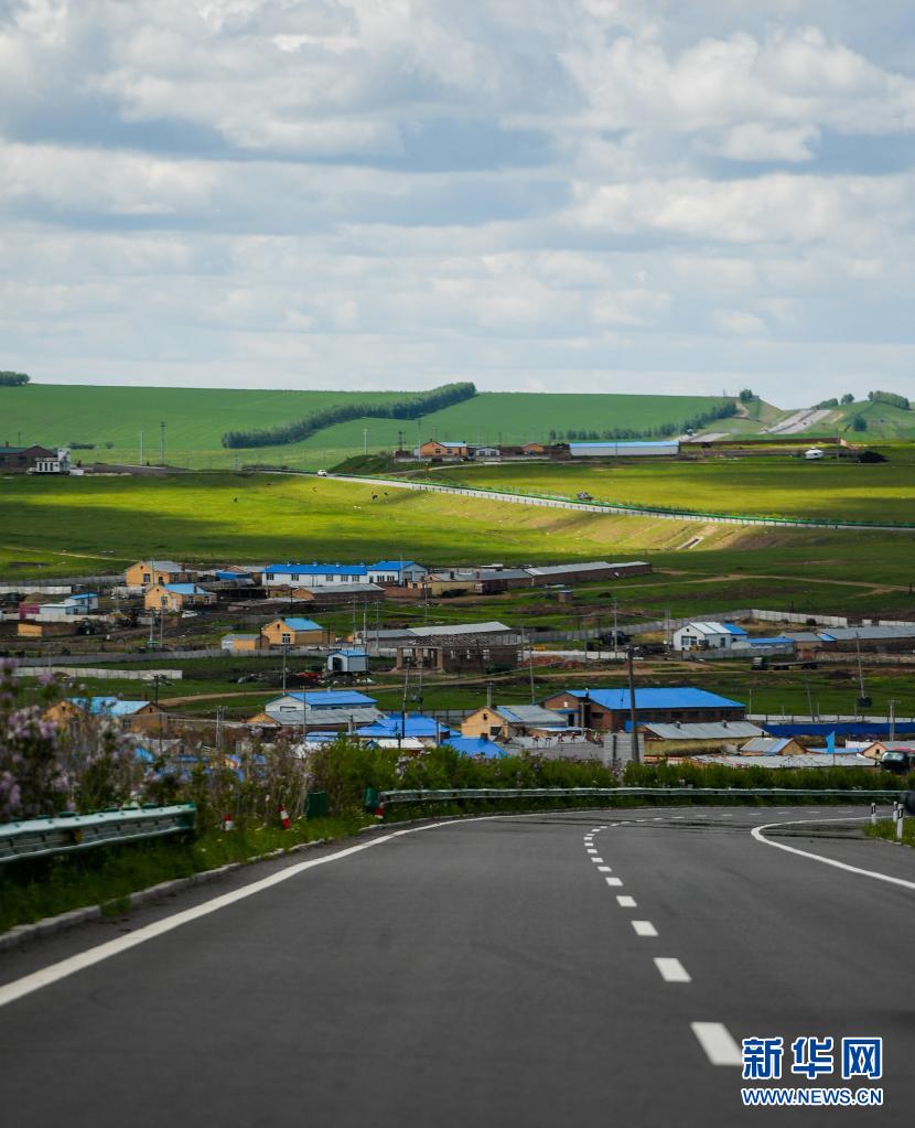 內(nèi)蒙古呼倫貝爾332國道旁景色迷人(6月10日攝)。