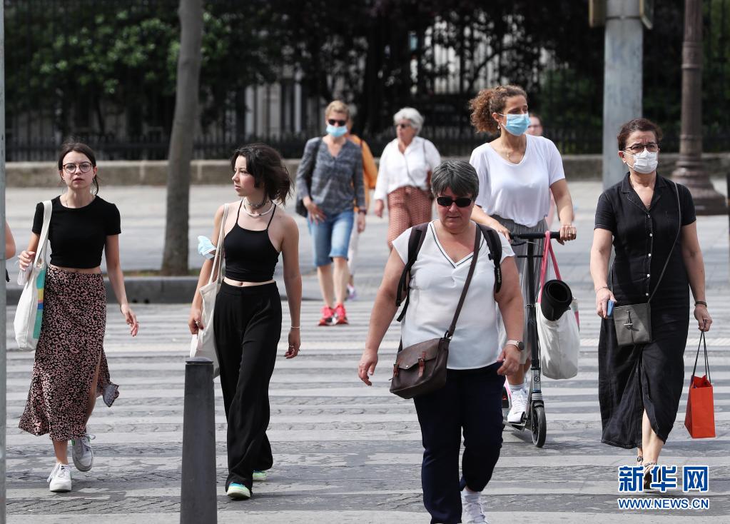 6月17日,人們走在法國巴黎香榭麗舍大街上。