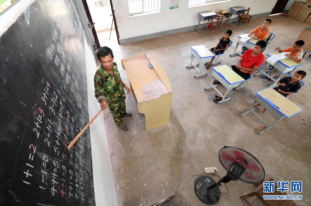 在廣西上思縣那琴鄉(xiāng)中心小學(xué)逢通村教學(xué)點,梁志雄老師在給學(xué)生上課(6月16日攝)。新華社記者 陸波岸 攝
